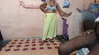 Desi woman from Indian village waited for her husband at the door of the house to satisfy her sex lust